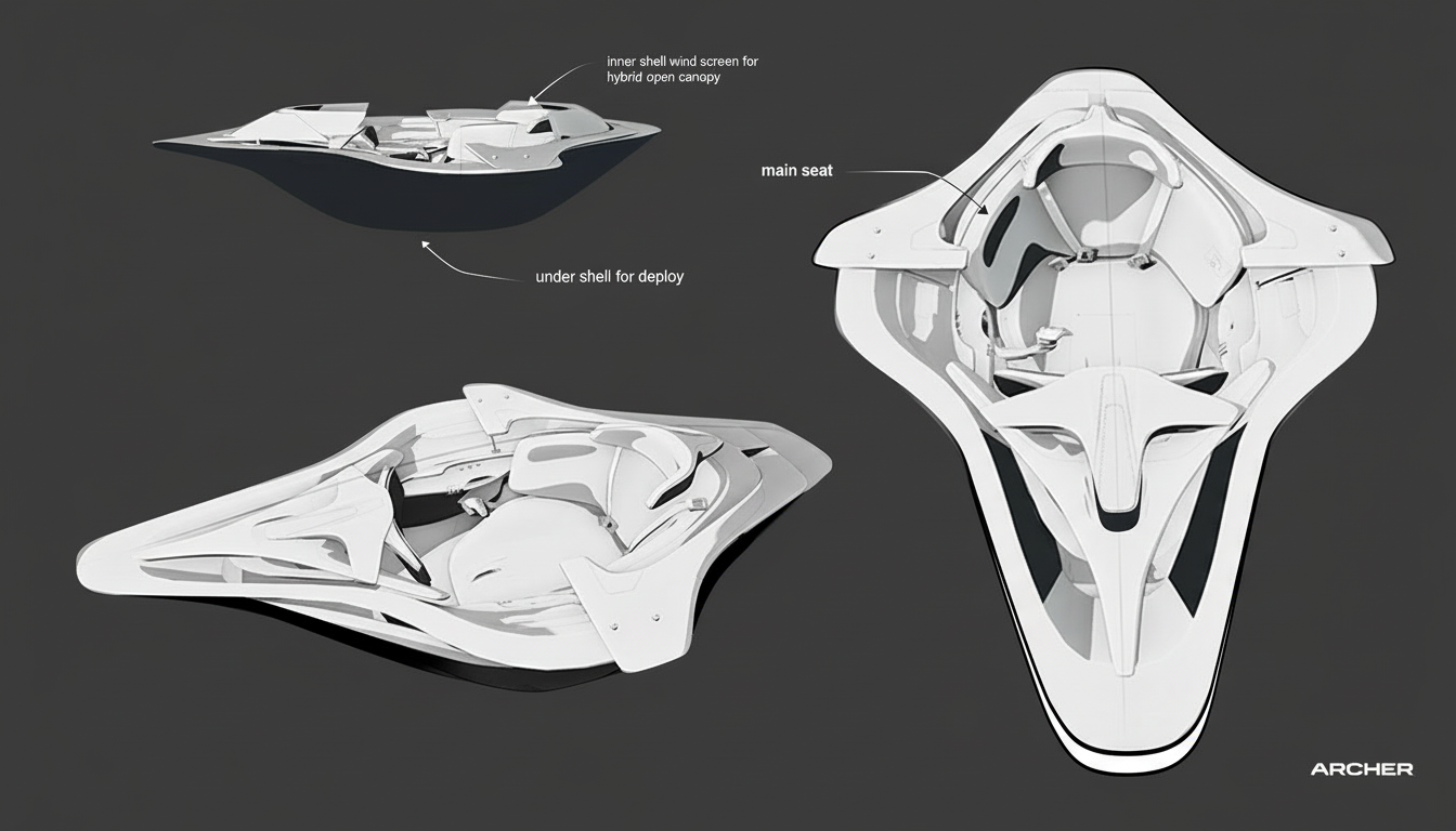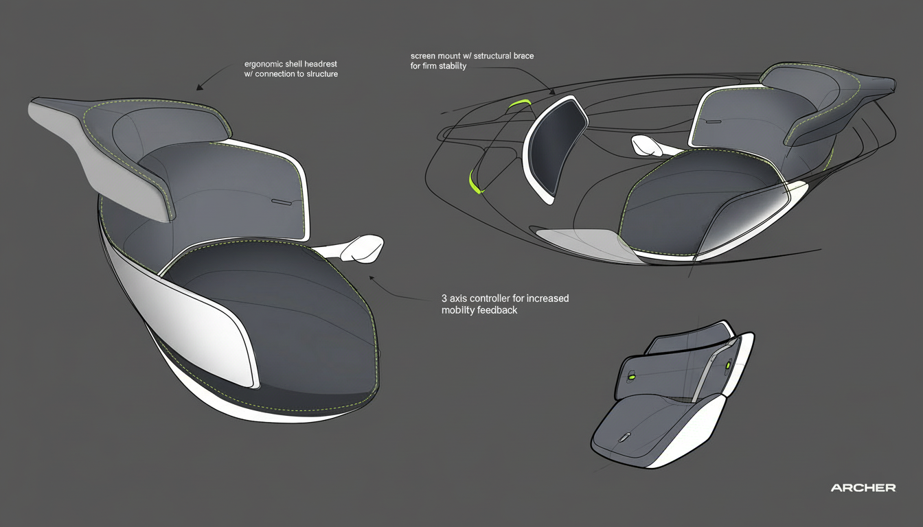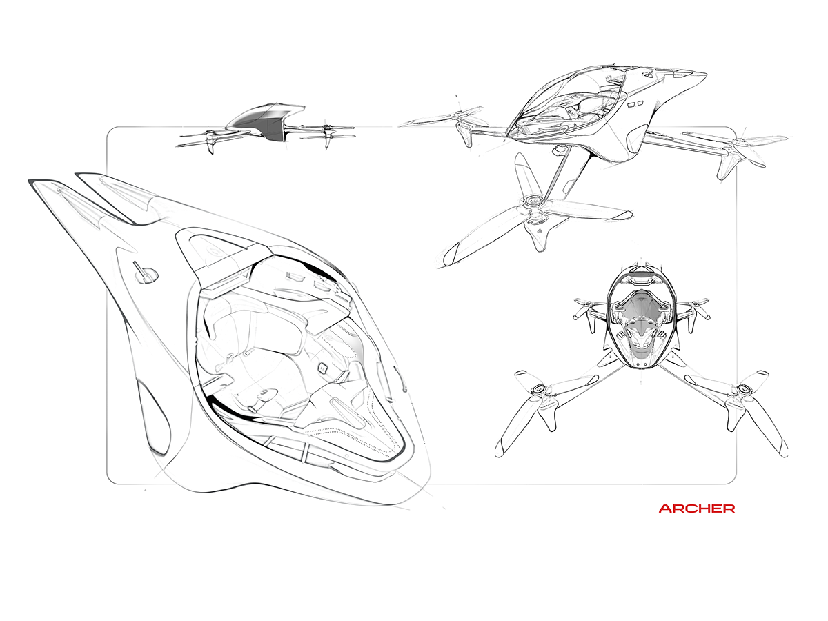 This concept was a look into the first racing series for manned electric flying aircrafts. This exploration looks into a single seat capsule that could represent Archer among one of the participants similar to the way automotive companies also explore performance.